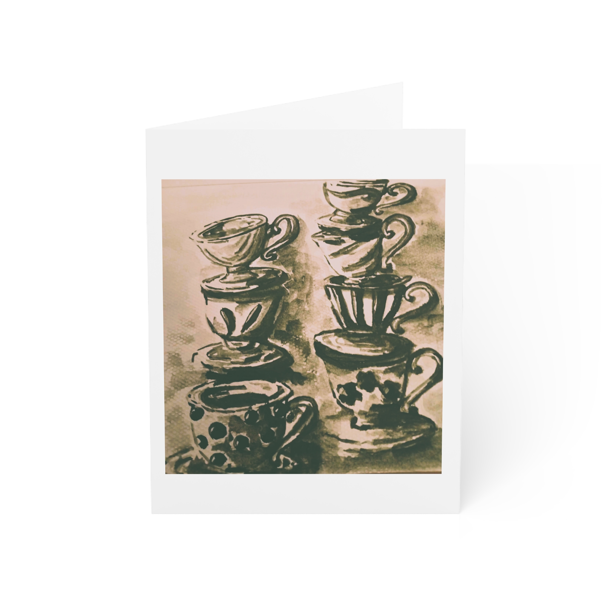 Mother-in-law’s Cups A simple moment from the kitchen table. Printed from original artwork and sent from Greece. Blank inside.